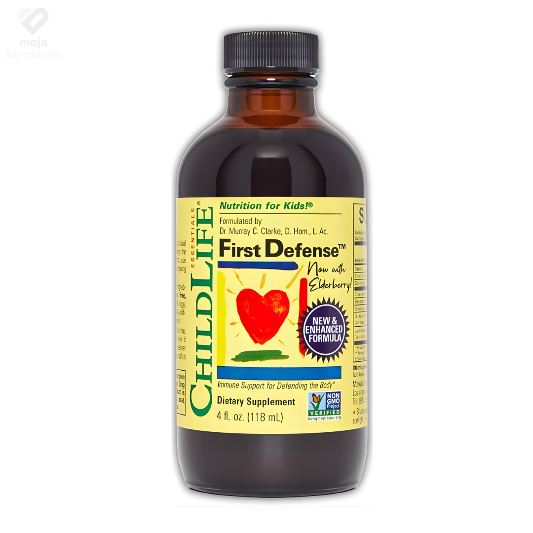CHILDLIFE First Defense je prirodni oralni rastvor formulisan za jačanje imunološkog sistema kod djece. Sadrži kombinaciju biljnih ekstrakata, minerala i antioksidanasa koji pomažu u zaštiti organizma tokom sezone prehlada i infekcija. Može se koristiti preventivno ili na početku simptoma.