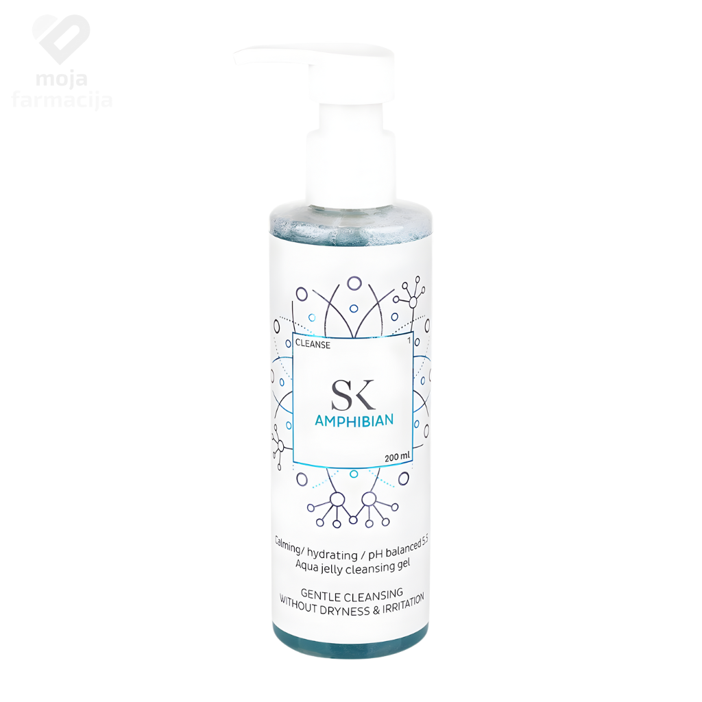 SKINTEGRA Amphibian je izuzetno blagi gel za čišćenje lica namijenjen svim tipovima kože, a posebno osjetljivoj i upalama sklonoj koži. Njegova aqua-jelly tekstura pretvara se u nježnu pjenicu koja učinkovito uklanja nečistoće, sebum i make-up bez osjećaja zatezanja ili isušivanja. Formuliran je bez agresivnih tenzida (SLS, SLES), alkohola, parfema i abrazivnih čestica, što ga čini idealnim za svakodnevnu upotrebu.