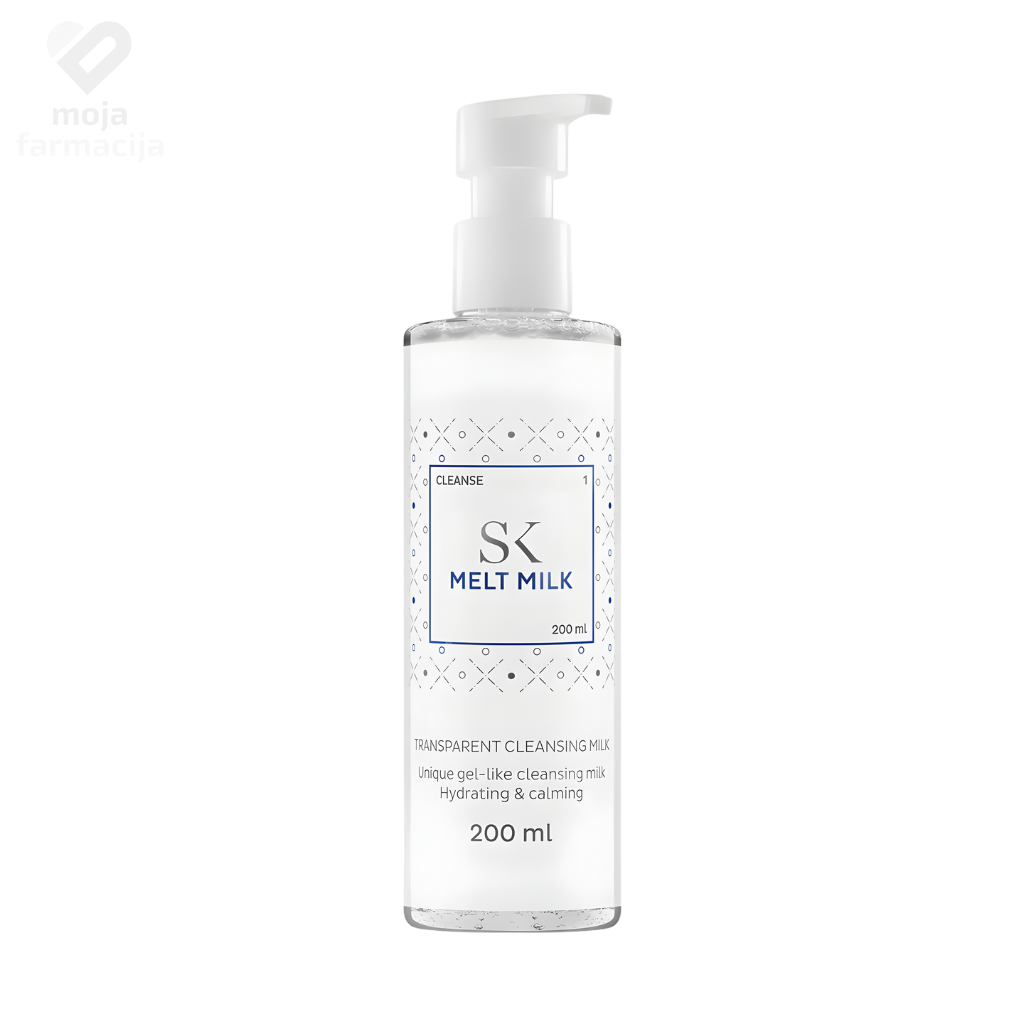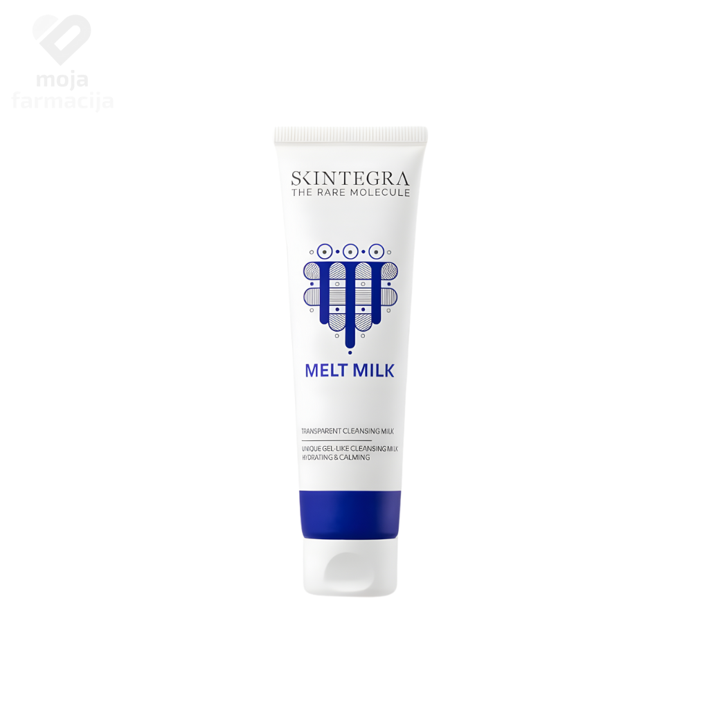 SKINTEGRA Melt Milk je inovativno prozirno mlijeko za čišćenje lica i uklanjanje šminke, formulirano u obliku tekućeg gela koji pruža osjećaj svježine i ugode čak i na najosjetljivijoj koži. Za razliku od klasičnih mlijeka koja ostavljaju film i začepljuju pore, Melt Milk se potpuno ispire i ne ostavlja težak osjećaj na koži. Može se koristiti samostalno, kao predčistač ili kao drugi korak čišćenja, što ga čini savršenim izborom za svakodnevnu rutinu. Posebno je pogodan za osjetljivu, dehidriranu i upalama sklonu kožu jer blago hladi i smiruje iritacije.