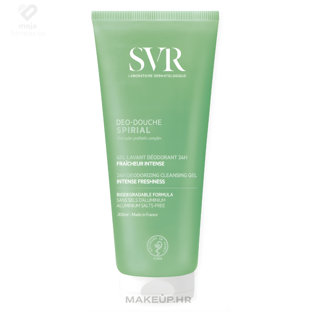 SVR Spirial gel za pranje je specijalizirani gel-tuš koji je formuliran za pojačano znojenje i iritiranu kožu tijela, posebno na područjima pazuha, vrata i leđa. Kombinacija blagog čišćenja i djelovanja protiv bakterija koja uzrokuju neugodan miris, pomaže održati osjećaj svježine tokom cijelog dana, bez agresivnih iritansa.